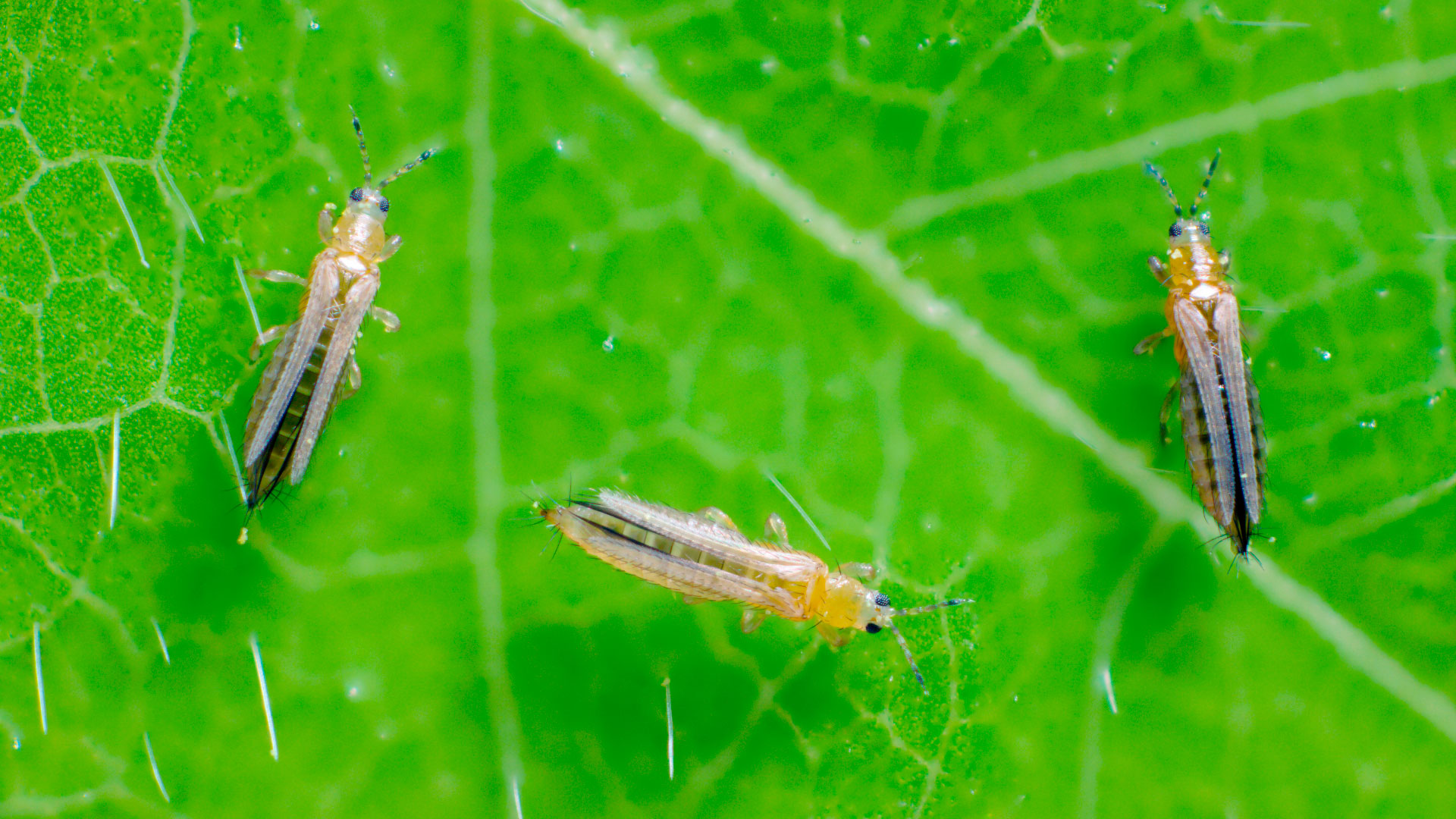 Los trips son insectos diminutos (<1.5 mm), delgados con vello en el borde de sus alas. La mayoría de las especies plaga se alimentan escondidas en botones, puntas de brotes o bajo sépalos.