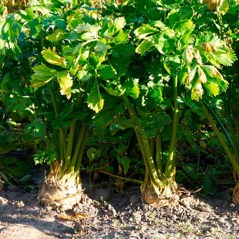 El apio posee un sistema de raíz vertical, pivotante y fibroso, con numerosas raíces laterales encargadas de la absorción de nutrientes. Estas raíces laterales tienden a extenderse a distancias muy cortas, lo que facilita el trasplante de plantas a distancias reducidas entre sí, las cuales pueden estar entre los 15 y 20 cm de separación. Esta particularidad permite un aprovechamiento eficiente del espacio en los cultivos.